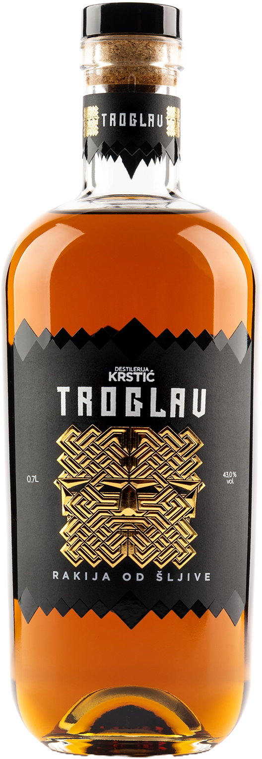 Troglav rakija od šljive – prepečenica satkana od najkvalitetnijih sorti šljiva (za proizvodnju koriste se 4 različite sorte – Crvena ranka, Požegača, Čačanska lepotica i Čačanska rodna). Veliki broj ukusnih nota čine ovu rakiju, od drvenastih do slatkasto aromatičnih, voćnih, cvetnih. Proces proizvodnje obuhvata odstranjivanje koštica, pasiranje ploda šljive, fermentaciju i destilaciju, nakon čega se obavlja proces starenja u drvenim hrastovim buradima. Svaki destilat korišćen za ovu kupažu, stario je u hrastovom buretu i kao rezultat starenja taj primarni miris se transformiše u prefinjeni buke, koji poseduje ova naša rakija.